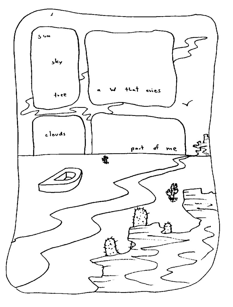 Illumination – Do the words and pictures create a third meaning beyond what words or pictures could do on their own? Pictures and words are often integrated in poetry comics in ways that create context that illuminates and/or transcends what they bring individually to the composition.