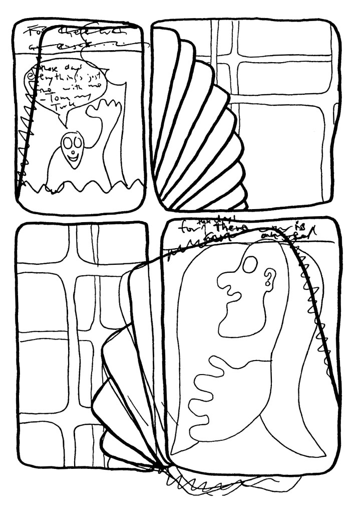 These are wild! There are frames coming out of pictures, frames inside frames, a network of frames, frames fanning and folding, frames ignoring gutters while creating their own runaway gutters, frames that are crossed out. They make their own universe with their own context and logic – surreal, meta, morphed – while carrying simple yet profound poetic messages. Much to admire here and be inspired by.